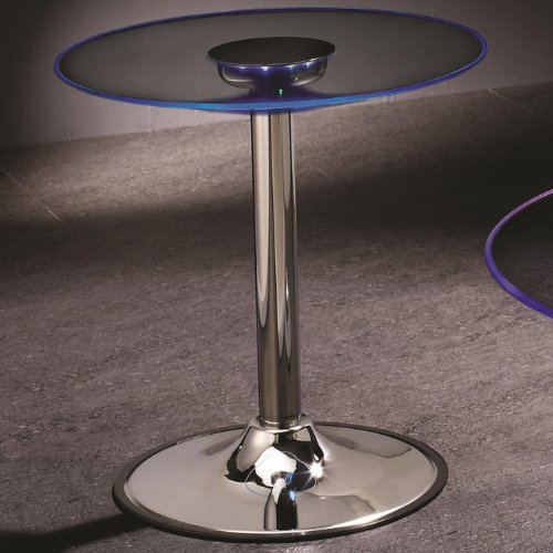 A truly innovative piece, this contemporary accent table features a tempered glass table top that transitions through six LED colors: blue, aqua, green, lime, purple, and red.